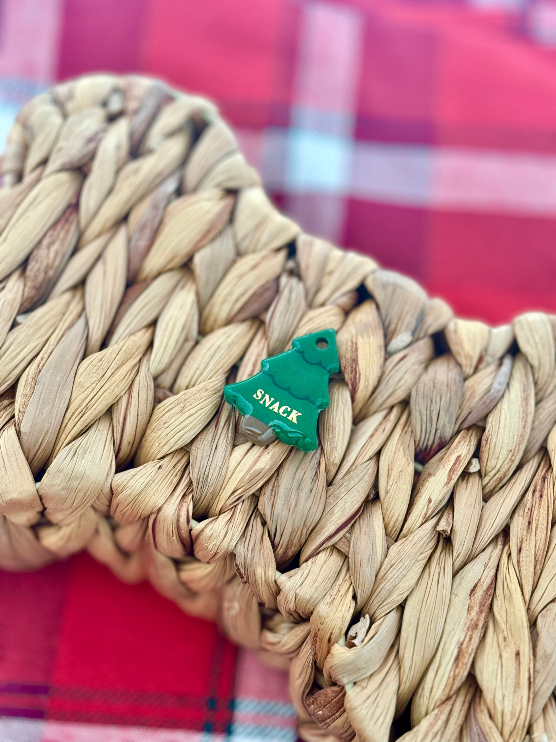 Pet tag is a clay and resin dog tag with gold or silver hardware.