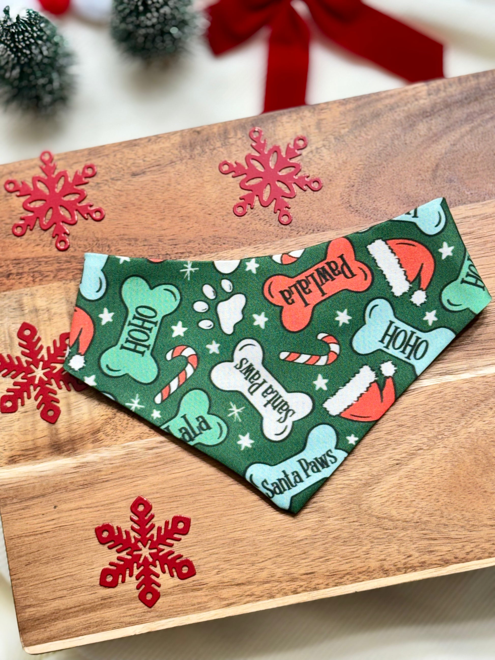 Product Disclaimer: The bandanas, collars, bow ties, and all other products are not meant to be chewed or played with. Please supervise your dog when wearing our products as it may cause choking or suffocation if left unattended. We are not responsible for damaged accessories caused by your pet or owner's misuse of our products.